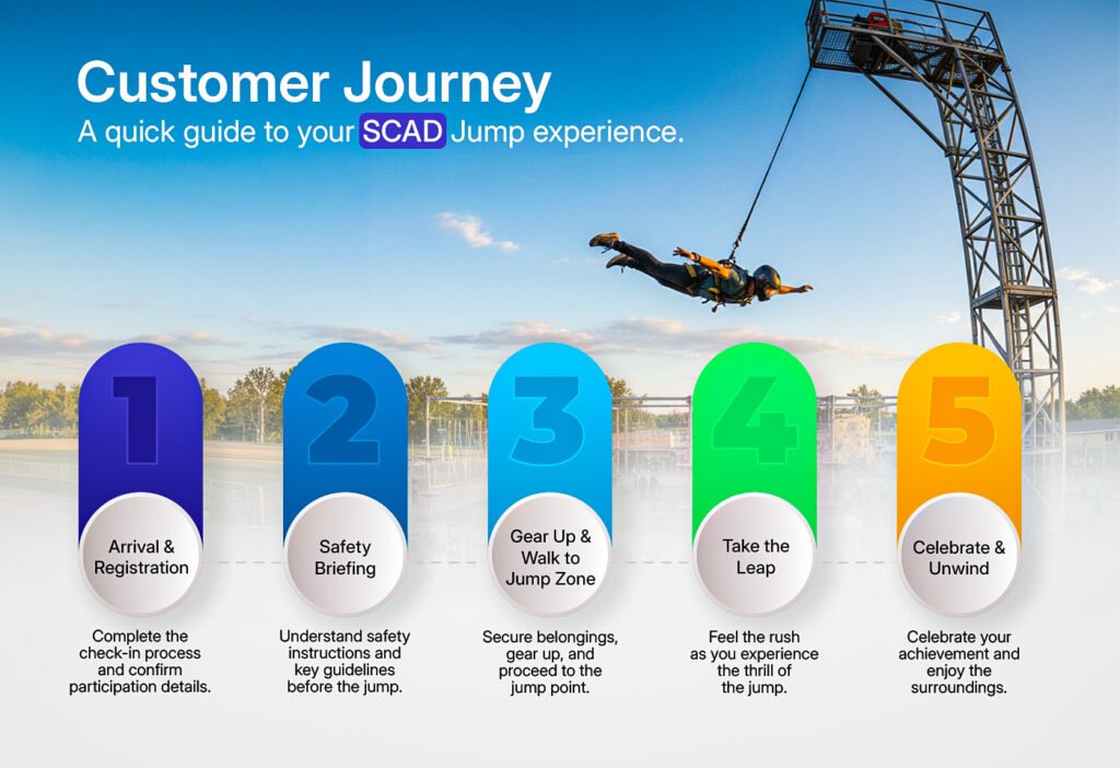 Arrive for your SCAD Jumping in Rishikesh. Register and complete your safety briefing. Gear up for your scad jump activity. Walk to the zone for scad jumping Rishikesh. Take the Scad Jump and earn your bravery badge. End your SCAD Jump in Rishikesh with a scenic walk. Celebrate your scad jump Rishikesh feat at the café.